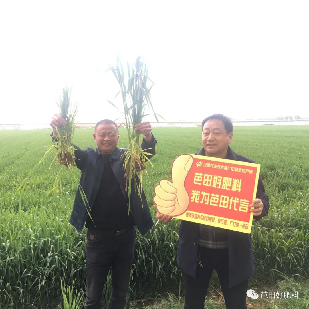 大户王连合表示,他与芭田结缘已有3、4年时间,选用芭田之前,他一直选用价格便宜点的劣质肥料。后来发现,自己的土壤品质越来越差,酸化现象加剧,种出的小麦黄叶多,容易倒伏,死苗烂根现象极多,亩产量仅700斤左右。后来在当种植大户的带动下,他大胆用上了芭田复合肥,相信芭田功能肥能给他带来新的认识。