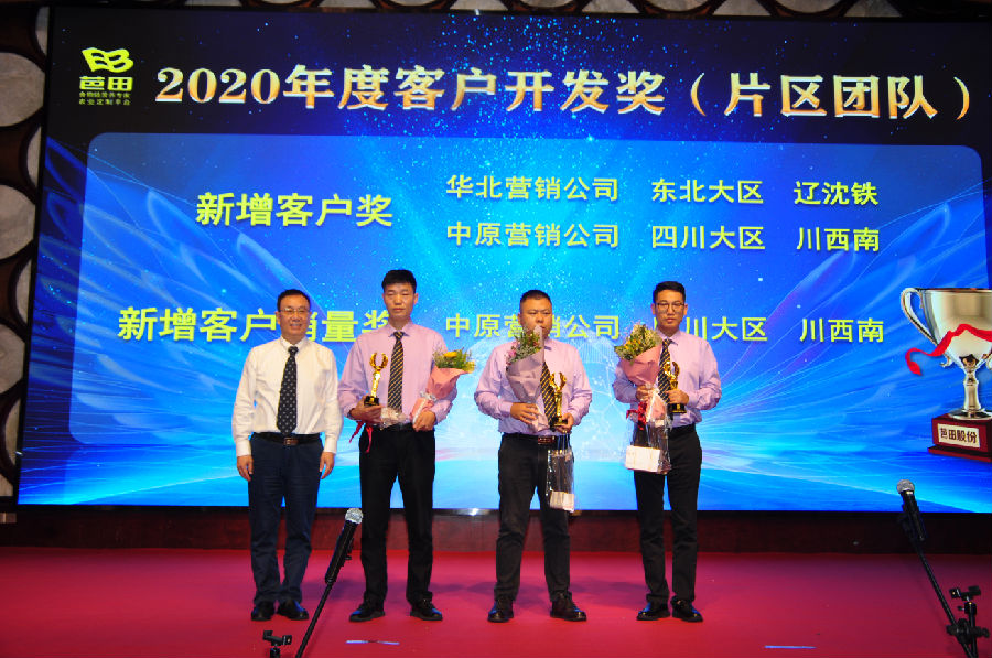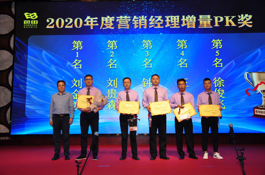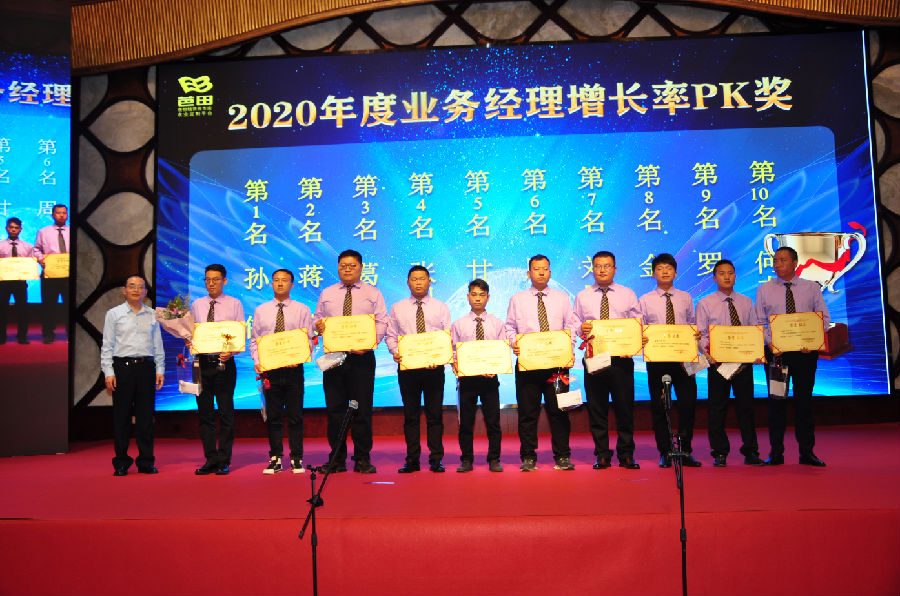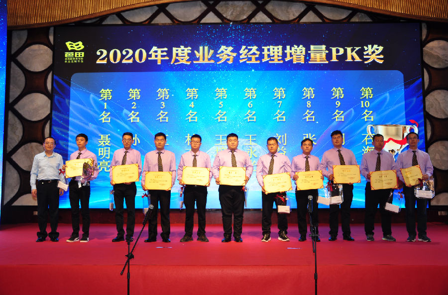 誓师大会的舞台是属于优秀者、贡献者的荣誉殿堂。会上,对2020年业绩突出的人员进行了表彰。中原营销公司总经理杨青凯年度营销总经理增量和增长率两个大奖的pk中脱颖而出,独揽两项大奖,这也是他第二次蝉联两项大奖。河南大区总监刘潘潘、四川大区总监倪引等30余名营销人员获得现金奖励共计近200万元。用拼搏换取成绩,用汗水赢得掌声。荣誉加冕是对全体战狼努力拼搏最大的鼓舞与肯定,也是对大家最好的鞭策与激励。
