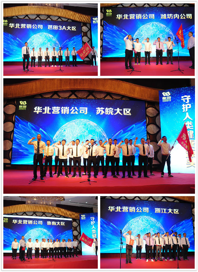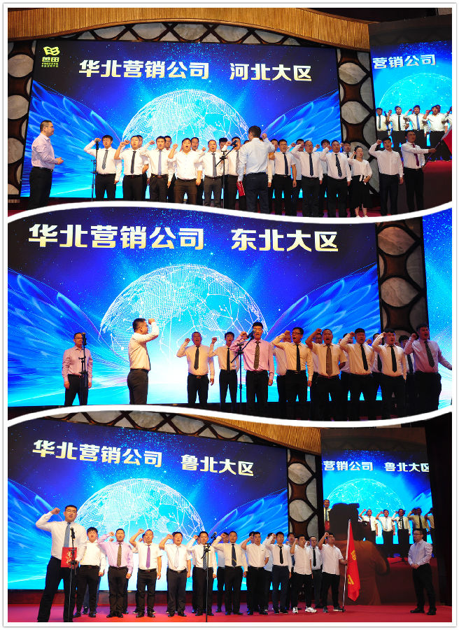 责任与担当,是芭田战狼身上永远不缺的品格。誓师大会环节,在各营销公司总经理的带领下,各大区负责人郑重地接过军令状,立下2021年度销量目标,进行团队风采展现。芭田战狼们斗志昂扬,激情澎湃,郑重宣誓,“我承诺,说得出,做得到!坚决完成目标,永不放弃。”铮铮誓言掷地有声,响彻会场。战役必胜的信心、整齐嘹亮的口号,穿透会场,直抵人心。芭田战狼们使命必达、永不放弃的狼性感染着现场的每一个人。